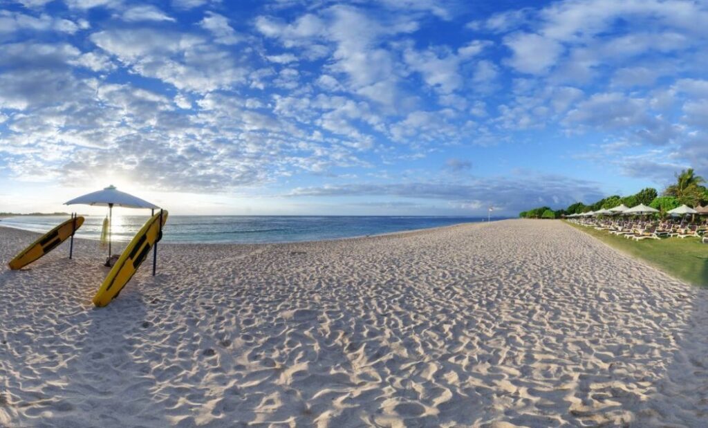 The vibrant tourism hub with white sand beaches, luxury resorts, nightlife, surfing spots, and iconic cliffside temples.