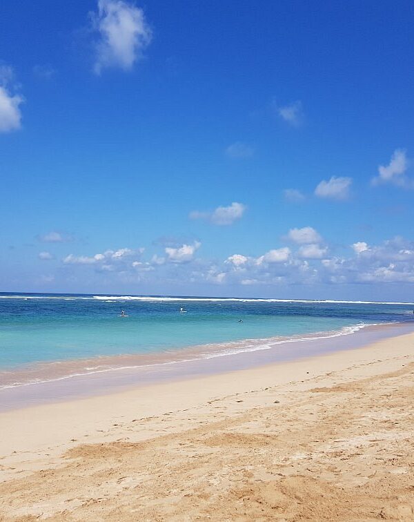 Start your day at Mengiat Beach, a peaceful white-sand beach in Nusa Dua known for its calm waves and clear water — perfect for a morning swim or beach walk.